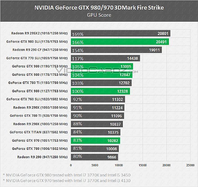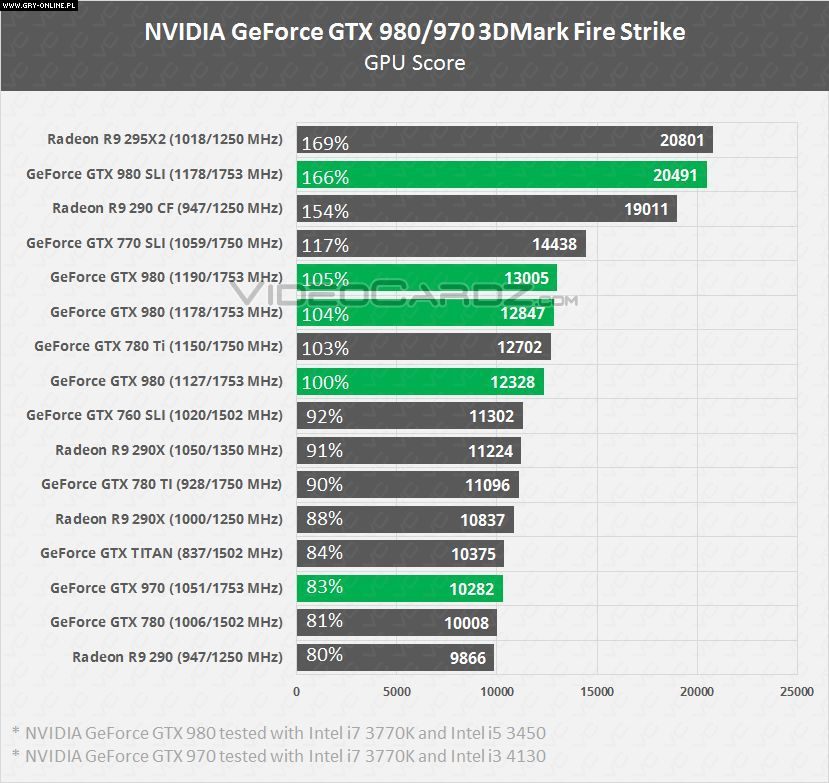 Z kolei GeForce GTX 970 będzie się charakteryzować zegarem 1051 MHz i 4 GB pamięci, co pozwala na uzyskanie lepszych wyników od GTX 780 oraz wydajność mocno zbliżoną do Titana.