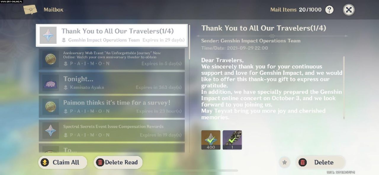 Pierwsze urodziny gry free-to-play Genshin Impact przebiegają w cieniu kontrowersji. Najpierw społeczność „jedynie” narzekała na niezadowalające nagrody, a później co niektórzy jej członkowie przeprowadzili „review bombing” mobilnej wersji produkcji dostępnej w sklepie Google Play (tj. zaniżyli jej ocenę). Teraz wydaje się zaś, że ich działania przyniosły pożądany efekt, bowiem odpowiedzialna za Genshin Impact firma miHoYo zaczęła wysyłać użytkownikom dodatkowe prezenty. Na razie jest to tylko 400 primogemów (growej waluty) i skórka na skrzydła (a także podziękowania za wsparcie) – a nie upragniona pięciogwiazdkowa postać – ale w wiadomości informującej o przyznaniu tych przedmiotów widnieje zapis, że upominki będą rozdawane w sumie przez cztery dni.
