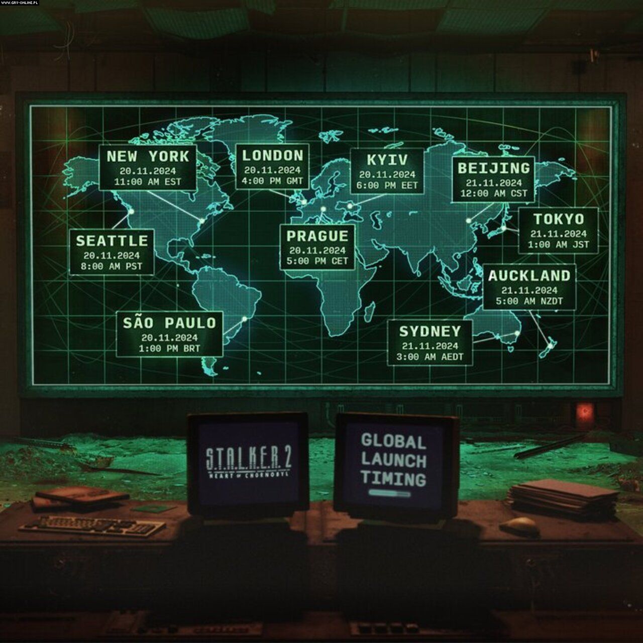 Od dziś możemy odliczać sekundy do oficjalnej premiery S.T.A.L.K.E.R. 2: Heart of Chornobyl. Studio GSC Game World opublikowało bowiem mapę z dokładnym czasem debiutu wyczekiwanego survivalu w poszczególnych strefach czasowych – w Polsce tytuł zostanie udostępniony 20 listopada 2024 o godzinie 17:00.