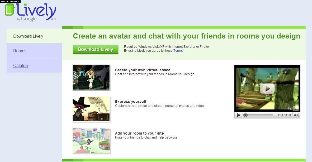 Przypomnijmy, że Lively to uruchomiony na początku sierpnia bieżącego roku serwis, będący darmową platformą komunikacyjną przypominającą Second Life. Pozwala użytkownikom na tworzenie własnych awatarów oraz lokacji. Wirtualne alter-ego w świecie Lively może wchodzić w liczne interakcje z awatarami pozostałych użytkowników serwisu (mogą spacerować, rozmawiać poprzez Google Talk, tańczyć, pływać, skakać itp.) Głównym zajęciem pozostaje jednak wzajemna komunikacja.