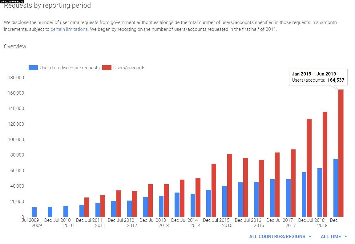 Stanowisko giganta z Redmond jest nieco kontrowersyjne, ale można je zrozumieć patrząc na statystyki. W ciągu ostatniej dekady bardzo wzrosła częstotliwość, z jaką służby sięgają po informacje będące w posiadaniu koncernów takich jak Google czy Facebook. W raporcie z zeszłego roku gigant z Mountain View ujawnił, że tylko w pierwszej połowie 2019 r. poproszono go o dostęp do danych przeszło 160 tys. użytkowników. W każdym przypadku firma przygląda się sytuacji i ocenia, czy żądanie służb jest adekwatne, czy też należy wymagać jego zawężenia (w zależności od roku, z pozytywną odpowiedzią spotyka się 60-80% wezwań).