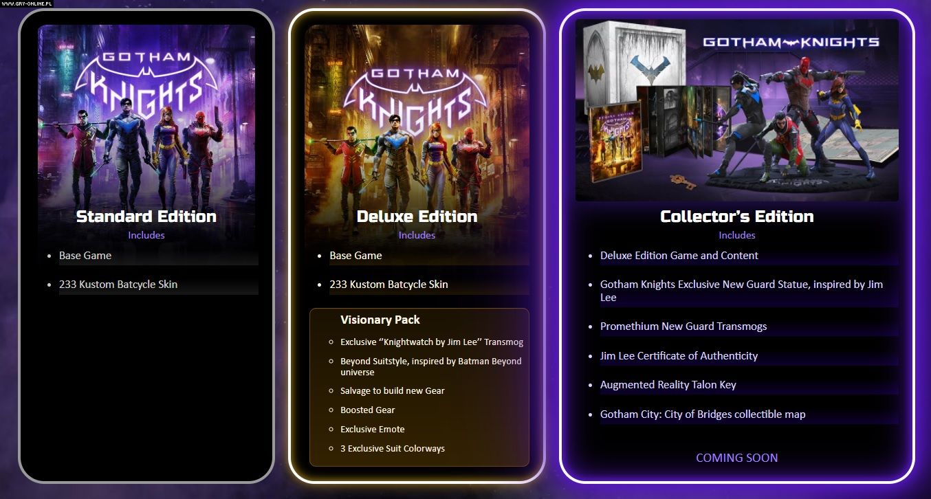 Relatywnie wysoka cena Gotham Knights, o której wspomniałem na początku wiadomości, mogła zostać podyktowana tym, że w grze nie będzie mikrotransakcji (przynajmniej na start – potem zobaczymy). Niewykluczone również, iż lokalne ceny zostaną dostosowane do rynkowych standardów obowiązujących na poszczególnych platformach.