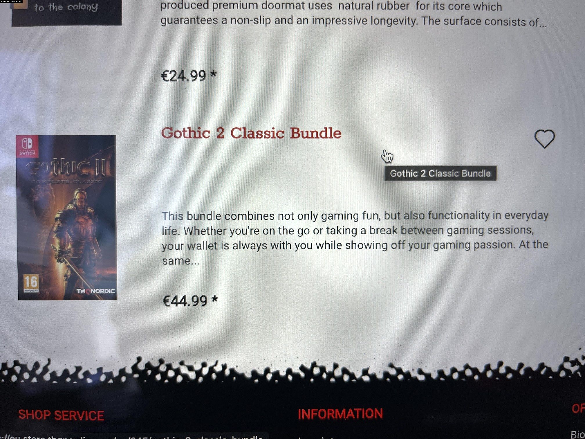 Kolejną rzeczą, która zwraca uwagę, jest cena owego wydania. 44,99 euro (ok. 207 zł) to sporo za dwudziestoletniego Gothica II – nawet z rozszerzeniem w zestawie. Wspomniany wyżej john_nah zaznaczył jednak, że w opisie tego wydania widniała informacja – jej fragment widać na screenie – że w pakiecie z grą otrzymamy wykonany ze sztucznej skóry portfel z symbolem Śniącego. Sama gra miałaby kosztować tyle samo co „jedynka” na Switcha – 29,99 euro (ok. 138 zł).