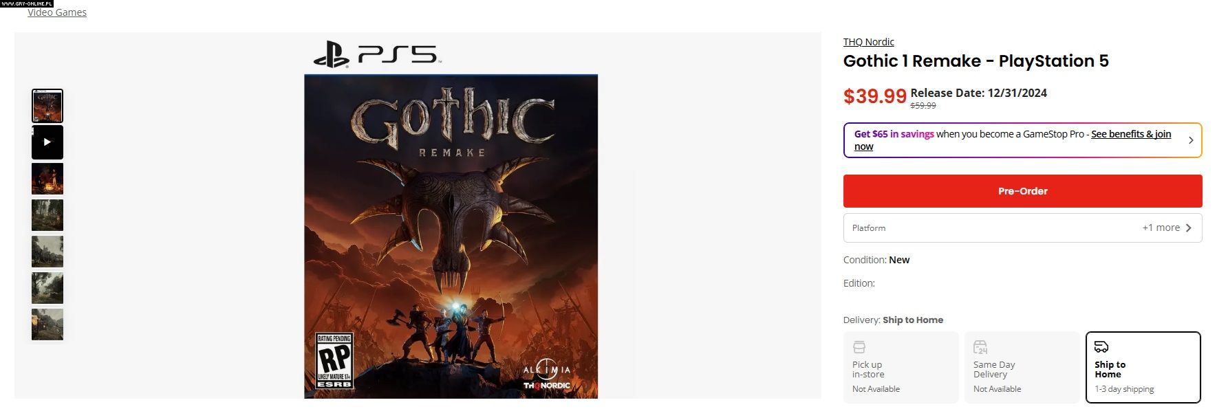Nie, Gothic Remake nie ukaże się w Sylwestra i nie jest dostępny w promocyjnej cenie przed premierą. Tak sugerował opis gry, który pojawił się w sklepie GameStop.