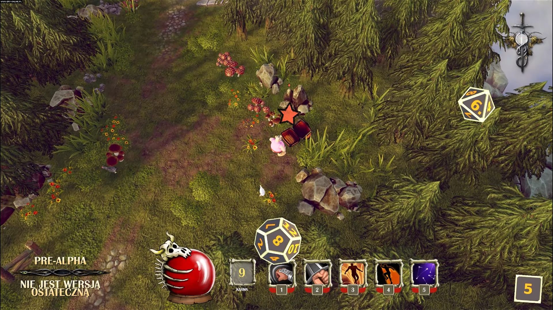 Wszystko jest całkowicie niespójne. Najpierw wspomniane assety. Wyglądają jak coś pomiędzy Warcraftem 3 a starym Summoner’s Rift z League of Legends i coś w tym jest, ponieważ paczka nazywa się „Top Down – Fantasy Forest – RTS & MOBA”, a do tego mamy prawie całkowity brak animacji i rzuty kostką dosłownie na środku ekranu. Tak, tak, gra opiera się na systemie RPG Earthdawn, tylko nie wiem, po co mam na to patrzeć. Na plasterki ma być hack’n’slashem. Chcę biec, pokonywać przeciwników i zdobywać przedmioty. Jedyny element, który stara się trzymać komiksowego oryginału, to chmurki odwzorowujące dźwięki i gwiazdki nad głowami pokonanych zbójcerzy. Tylko to też nie pasuje do całości oprawy wizualnej i sprawia wrażenie wklejonego na siłę.