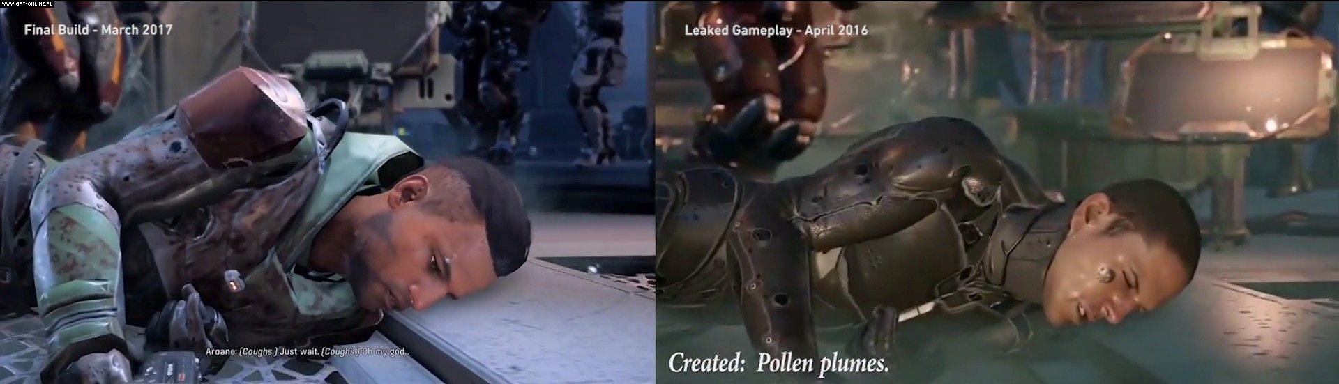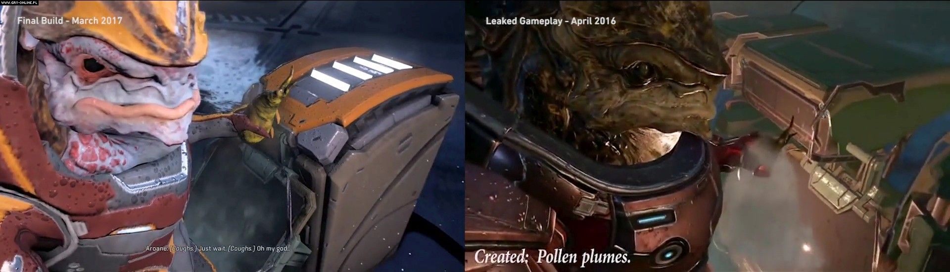 Jak często bywa przy okazji premier gier segmentu AAA, w sieci pojawiły się materiały multimedialne porównujące jakość grafiki finalnej wersji najnowszej propozycji studia BioWare, Mass Effect: Andromedy, z tą widoczną na wyciekłym w kwietniu 2016 roku zapisie rozgrywki. Zestawienie w formie wideo można zobaczyć pod tym adresem. Nietrudno zauważyć, że build sprzed niemal roku wypada korzystniej, między innymi pod względem oświetlenia czy ostrości tekstur, niemniej bez odpowiedzi pozostaje pytanie o platformy sprzętowe (i ewentualne ustawienia graficzne), na których dokonano zapisu, a więc też o uczciwość i miarodajność tej komparacji. Nie jest wszak tajemnicą, że pomiędzy dostępnymi edycjami – tj. na komputery osobiste oraz konsole PlayStation 4, PlayStation 4 Pro i Xbox One – istnieją jasne różnice pod względem wizualnym. Mowa tutaj chociażby o rozdzielczości ekranu, płynności rozgrywki czy ogólnej jakości grafiki. Poniżej możecie zobaczyć kilka zrzutów ekranów w, nazwijmy to, szczególnie kontrastujących momentach.