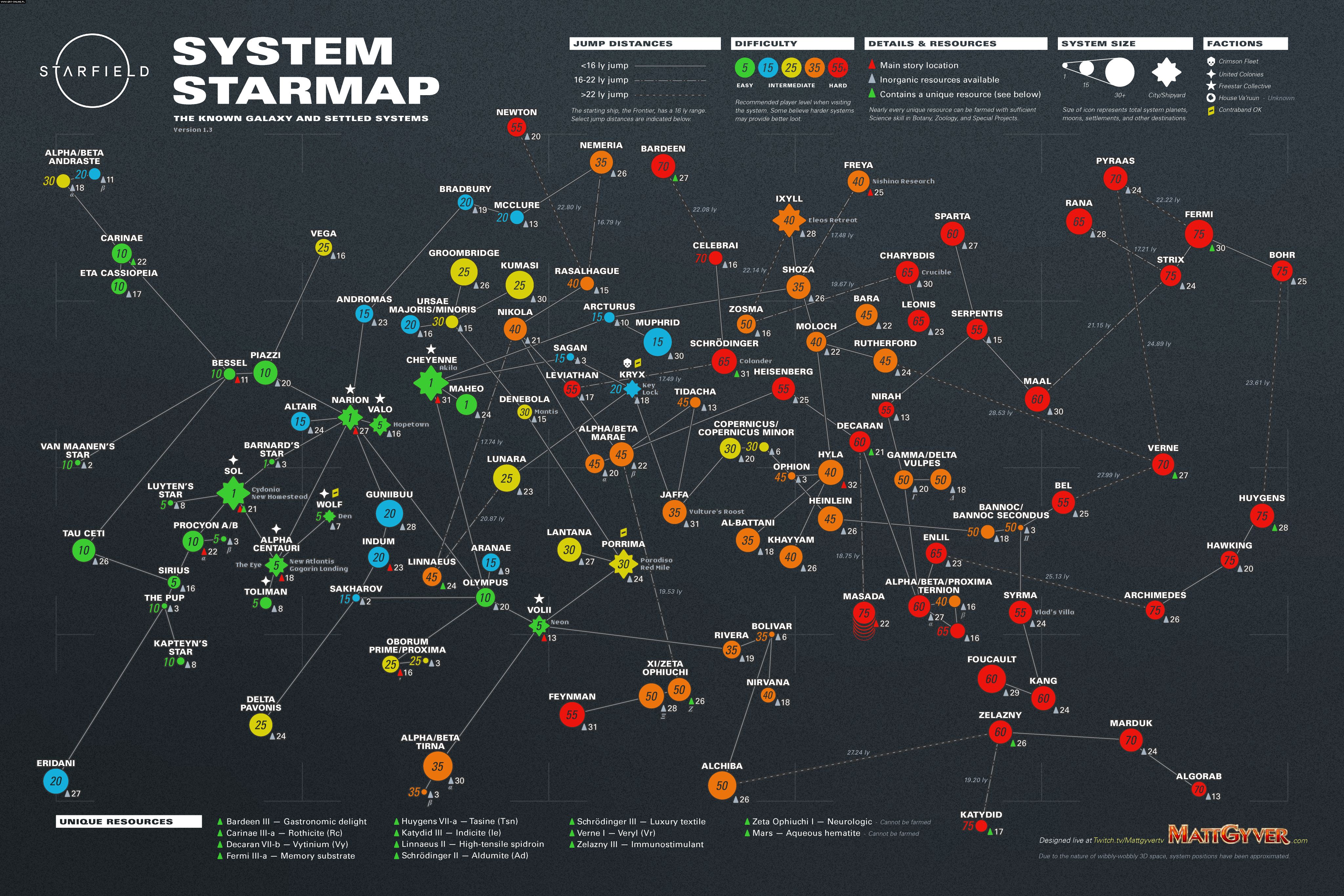 Autorem szczegółowego dzieła, o którym dzisiaj mowa jest Matt Benson, znany na redditowym forum jako Mattgyver. Posiadający ponad dwadzieścia lat doświadczenia w grafice komputerowej, od jakiegoś czasu pracuje nad stworzeniem detalicznej mapy wszystkich systemów w Starfieldzie.