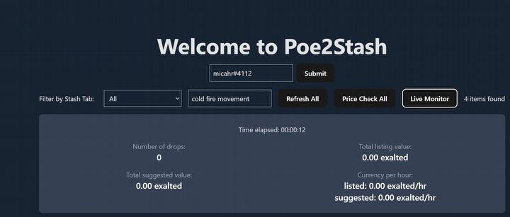 Gracz o nicku micahriggan stworzył program, który umożliwiał szybkie sprawdzanie cen zdobytych w PoE 2 przedmiotów, bez konieczności przeszukiwania rynku dla każdego itemu z osobna. Kluczowe funkcje Poe2Stash obejmowały: