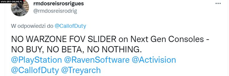Co prawda wraz z nadejściem Call of Duty: Vanguard Warzone może dostać next-genowy update, który będzie zawierać opcję zmiany pola widzenia, jako że ta zostanie zaimplementowana w nadchodzącej drugowojennej odsłonie. Potwierdzenia ze strony deweloperów jednak nie ma, a konsolowi gracze Warzone dają upust swojemu niezadowoleniu m.in. na Twitterze.
