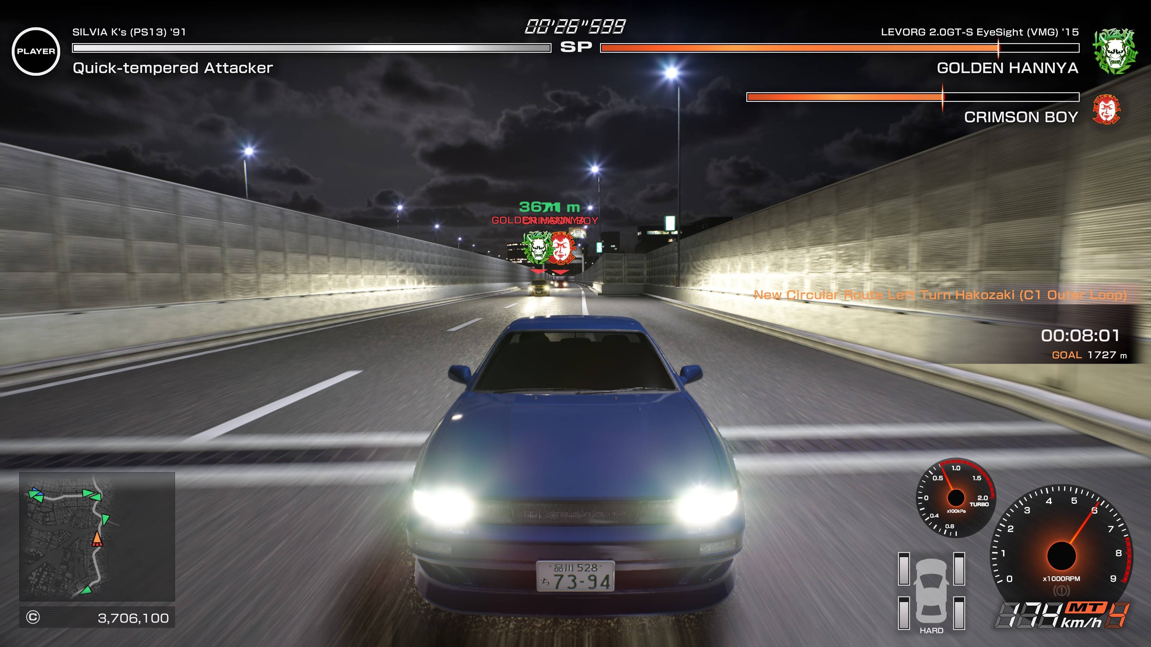 Nie ma tutaj z góry wytyczonych tras z linią startu i mety. Pojedynek zaczyna się tam, gdzie spotkaliśmy rywala i mignęliśmy mu zza pleców długimi światłami (wybór odpowiedniego miejsca może mieć znaczenie taktyczne, kiedy mierzymy się z wysokopoziomowym konkurentem dysponującym lepszą maszyną, która odstawiałaby nas na prostych), a kończy, gdy jeden kierowca oddali się od drugiego i utrzyma przewagę do czasu, aż rywalowi wyczerpią się „punkty ducha”. Wszystko to odbywa się w ruchu ulicznym, więc starcia bywają emocjonujące, zwłaszcza na ciasnych i krętych odcinkach Shutoko Expressway.