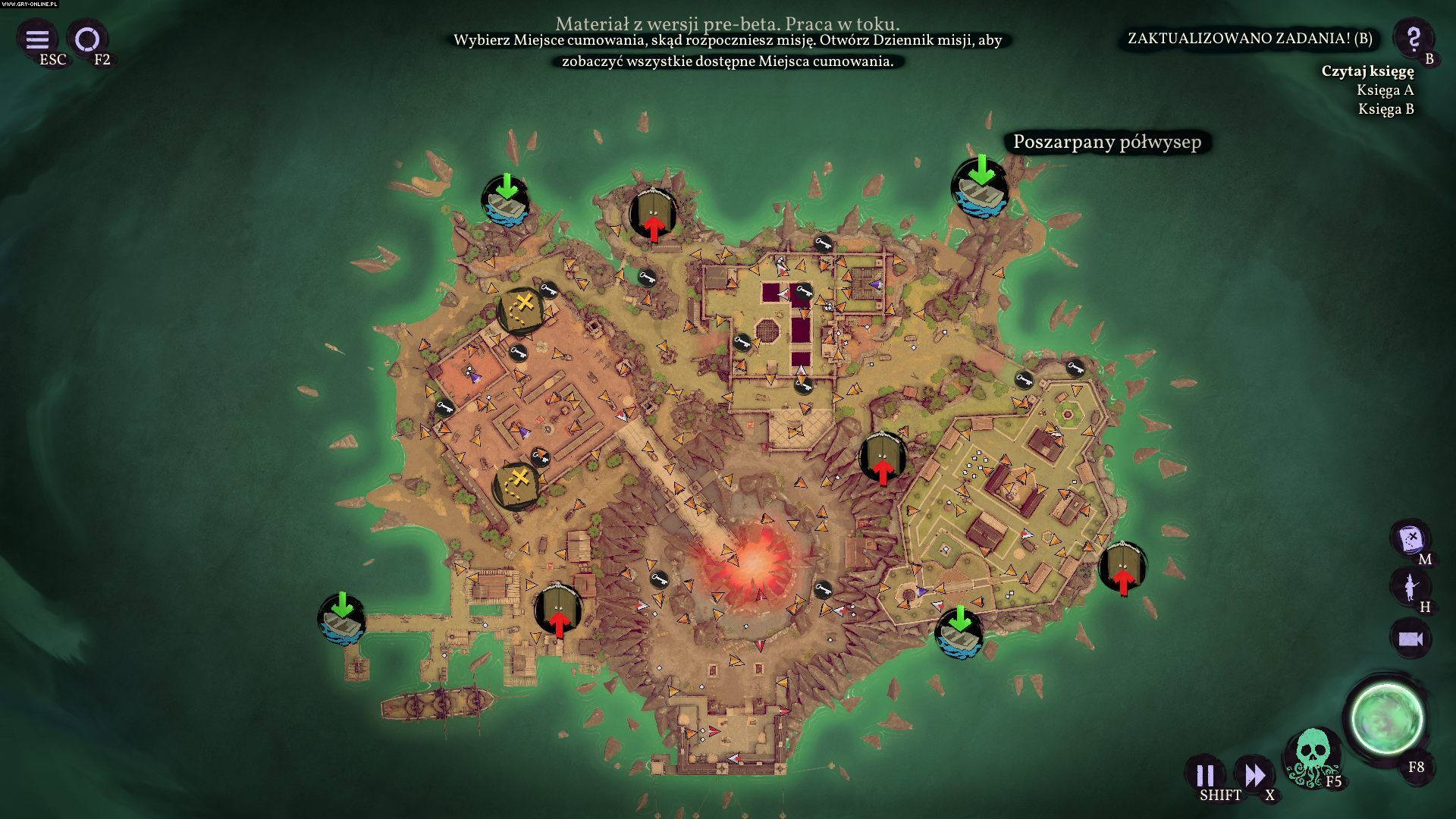 Misje zaczynają się od wyboru miejsca cumowania statku. Warto dopasować je do posiadanej drużyny, aby najlepiej wykorzystać pirackie umiejętności.Shadow Gambit: The Cursed Crew, Mimimi Games, 2023
