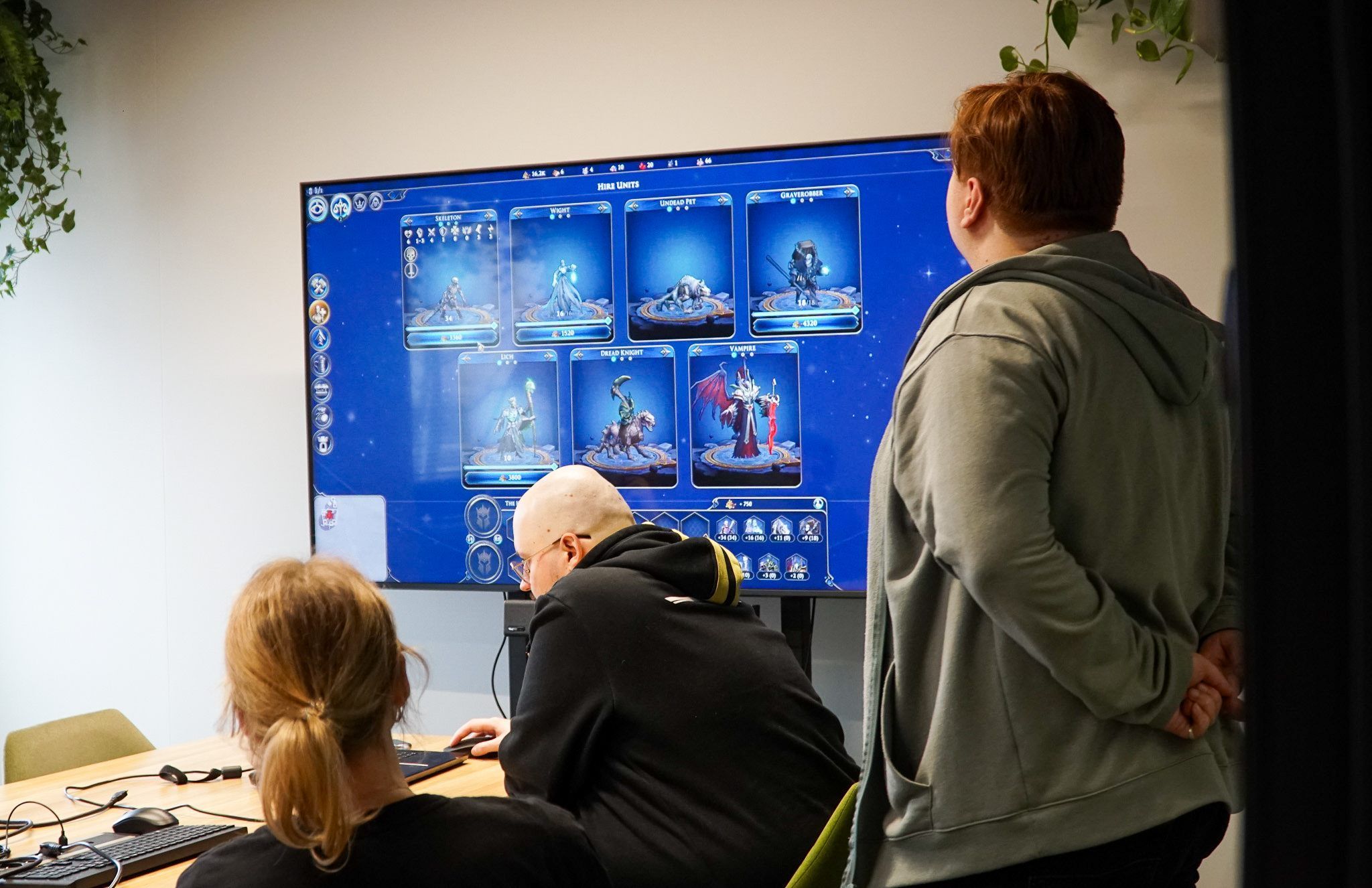Redakcyjny kolega Michał flankowany przez naszych gości ze studia Unfrozen.Heroes of Might and Magic: Olden Era, Unfrozen, 2025.