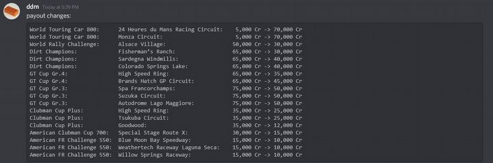 Szczególną irytację wśród graczy wywołało znaczące obniżenie nagród za wygrane w trzech wyścigach, które do tej pory uważane (via gtplanet.net) były za źródło względnie szybkiej gotówki.