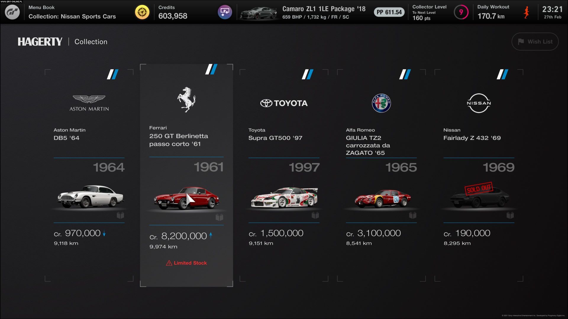 Jak te kwoty mają się do ekonomii w grze? Ceny samochodów prawie nie zmieniły się względem GT Sport. Pojazdy wyścigowe Gr. 4 kosztują po 350 tys. kredytów, w klasie wyżej (Gr. 3) po 450 tys. Cr., a dla topowych maszyn – bolidów Gr. 1 i ekskluzywnych prototypów spod znaku Vision Gran Turismo – ustalono cenę na poziomie 1 mln kredytów. Poza tym są jeszcze dziesiątki droższych, kultowych aut, których wartość może sięgać nawet 10 milionów Cr. (albo i więcej).