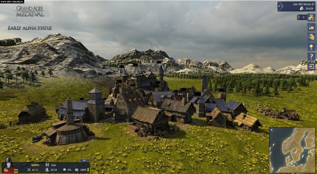 Na razie nie wiemy zbyt dużo Grand Ages: Medieval. Co prawda, twórcy opublikowali filmowy trailer, ale nie zawiera on żadnego fragmentu gameplayu i przedstawia jedynie standardowe animowane intro. Więcej wniosków wyciągniemy z udostępnionych screenów, ilustrujących wersję alfa. Wiemy na pewno, że w trakcie zabawy gracze zostaną przeniesieni do średniowiecznej Europy (akcja rozpoczyna się w 1050 roku). Rozgrywka będzie odbywać się na ogromnej mapie przedstawiającej cały kontynent oraz północną Afrykę i Bliski Wschód.