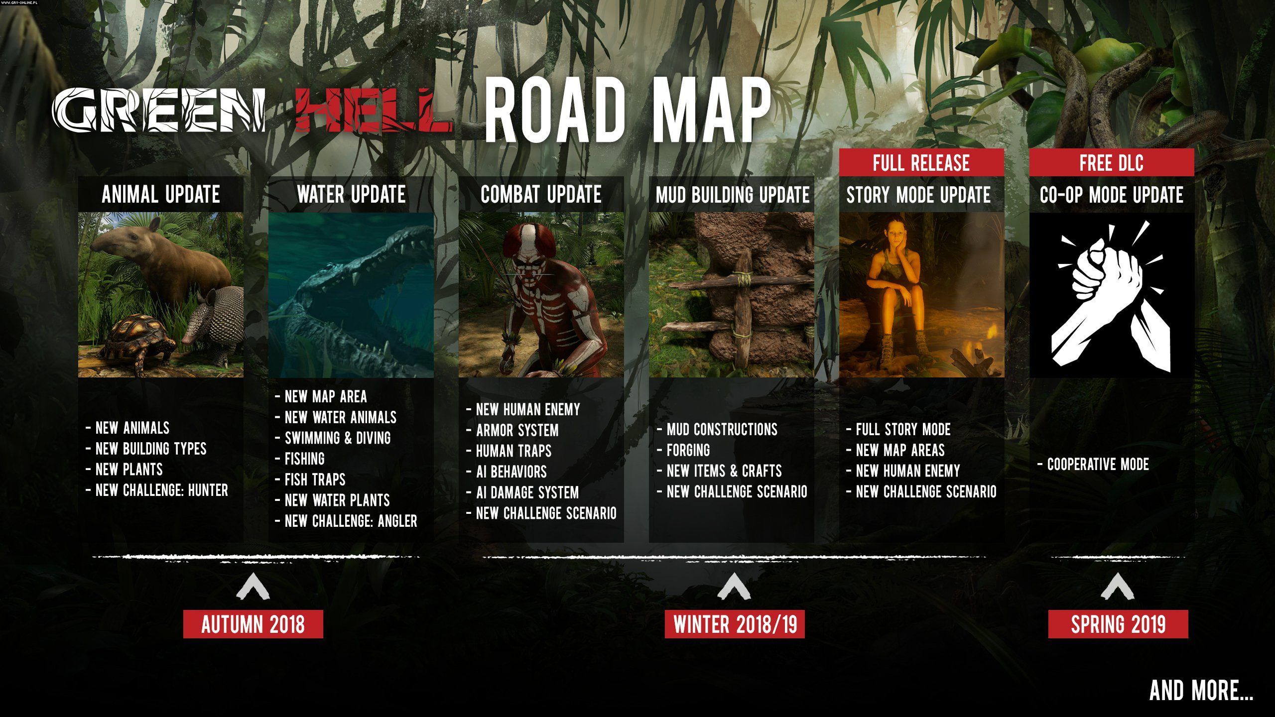 W najbliższych miesiącach Green Hell doczeka się szeregu dużych aktualizacji, między innymi poszerzających obszar zabawy, usprawniających walkę oraz dodających nowe przedmioty, elementy do konstrukcji i scenariusze wyzwań. Wszystko to w ramach przygotowań do premiery pełnej wersji gry, która ma odbyć się jeszcze tej zimy. Zaoferuje ona między innymi prowadzoną na wzór psychologicznych thrillerów pełną kampanię fabularną, której przedsmak możemy poczuć w samouczku dostępnym obecnie w tytule.