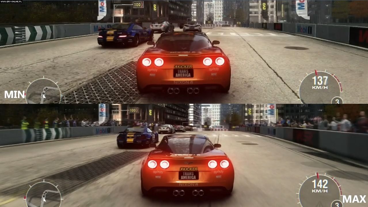 Programiści wykonali przy GRID 2 znakomitą robotę. Silnik graficzny napędzający grę i jego optymalizacja powinny być wzorem dla pozostałych deweloperów. Zmiany w ustawieniach graficznych są przy tym dość widoczne i tę różnicę dobrze widać na wszelkich odbiciach karoserii. Poza tym rzuca się w oczy również brak wygładzania krawędzi na minimum. Niemniej jednak wspomniana przed chwilą dobra optymalizacja powinna pozwolić cieszyć się detalami większości pecetowych graczy.
