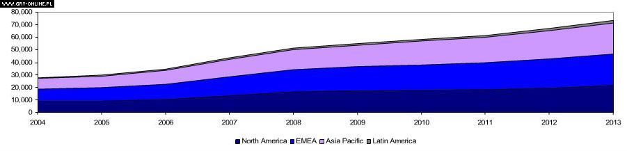 2. Europa i Azja, w związku ze stałym rozwojem rynku, stają się powoli znaczącą konkurencją dla Ameryki Północnej.