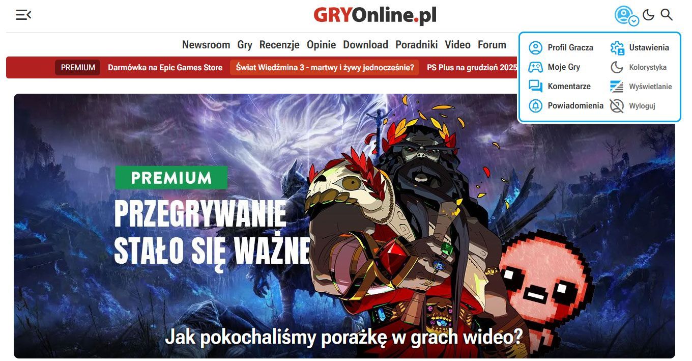 Zacznijmy od tego, że w prawym górnym rogu pojawił się rozwijany panel, pozwalający Wam w łatwy sposób korzystać z podstawowych funkcji strony, w tym: zalogować się i wylogować, zmienić kolorystykę, ustawić pożądany wariant formatowania treści, a także wyświetlić swój profil gracza, kolekcję gier, komentarze czy system powiadomień.