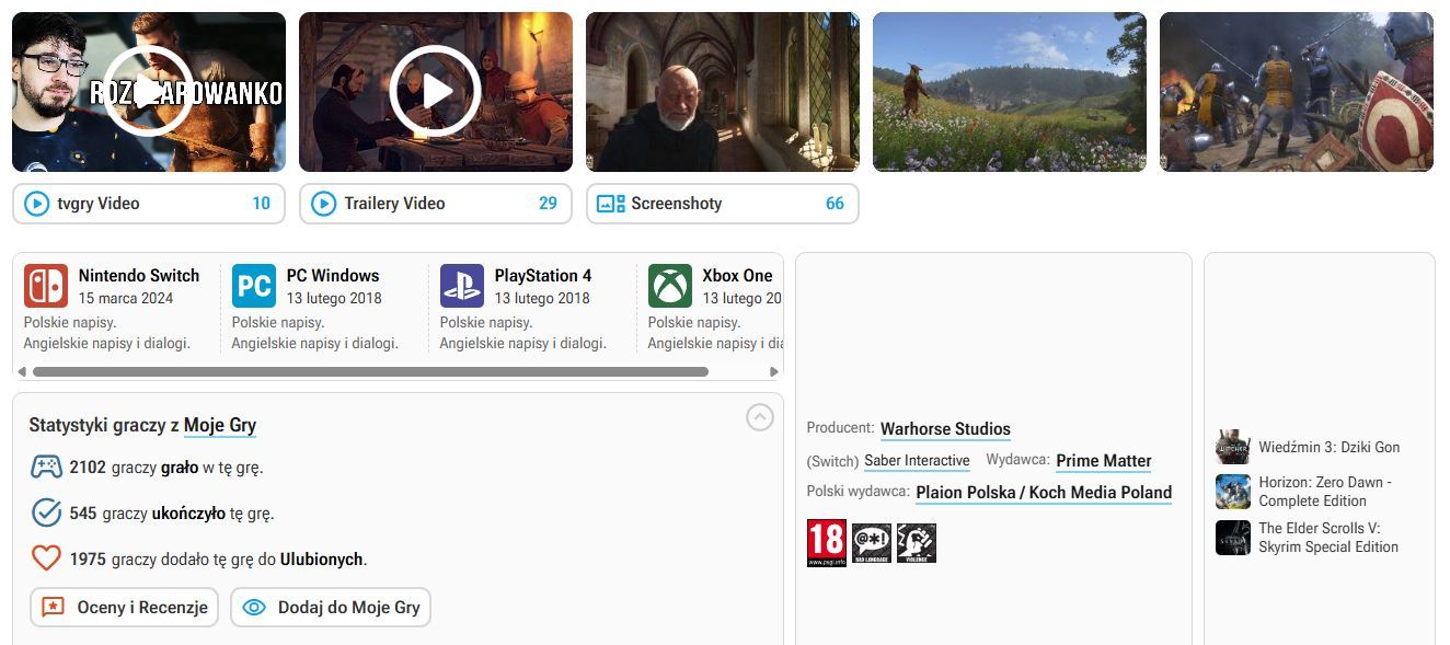 Zmian jest oczywiście dużo więcej. Przerobiliśmy nieco strony gier w Encyklopedii Gier. Zgodnie z Waszymi sugestiami ikony platform nie kierują już do list gier na dane platformy, lecz do sekcji informującej o datach premier, wersjach językowych, grach podobnych, producentach itp. Poza tym pojawiła się nowa sekcja poświęcona danym, które uzupełniacie, moderując swoje kolekcje gier, czyli: ile osób skończyło dany tytuł, ile zajęło im to czasu czy w końcu – ile osób czeka na premierę danej gry.