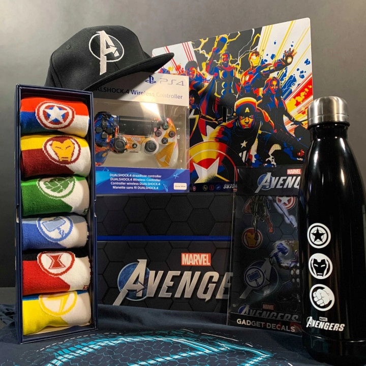 Superbohaterowie wchodzący w skład ekipy Avengers podbili serca wielu miłośników popkultury na całym świecie. Należycie do tej grupy? Jeśli tak, to być może Waszą uwagę przyciągnie aukcja zestawu, którego częścią są nowa konsola PS4 Pro i kontroler w malowaniu nawiązującym do bohaterów komiksów i filmów Marvela, a także edycja kolekcjonerska gry Marvel's Avengers wraz z zestawem gadżetów - skarpetkami, bidonem, czapką, smyczą i naklejkami.