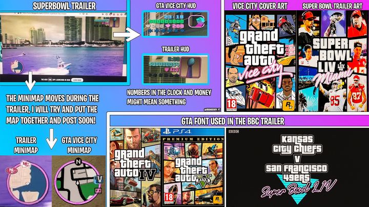Co ciekawe, w tym samym czasie Rockstar zamieścił na Instagramie (i rychło skasował) zdjęcie koszykarza LeBrona Jamesa z kopią GTA: Vice City. Szybko pojawili się gracze próbujący powiązać to z Super Bowl 54, ale większość internautów uznała te domysły za wydumane. To samo zresztą dotyczyło filmiku otwierającego zawody. Część osób wskazywała, że mogło to być nawiązanie do zorganizowania tegorocznych mistrzostw w Miami (a konkretniej: na Hard Rock Stadium w Miami Gardens), bez związku z planami Rockstar Games. Oczywiście dla tych, którzy są absolutnie przekonani o powrocie do Vice City w GTA 6, być może (jak chcą fani) wraz z co najmniej dwoma innymi miastami, to tylko kolejny „dowód” na osadzenie akcji gry w alternatywnej wersji Miami. Nie żeby brakowało innych sugerujących to przesłanek.