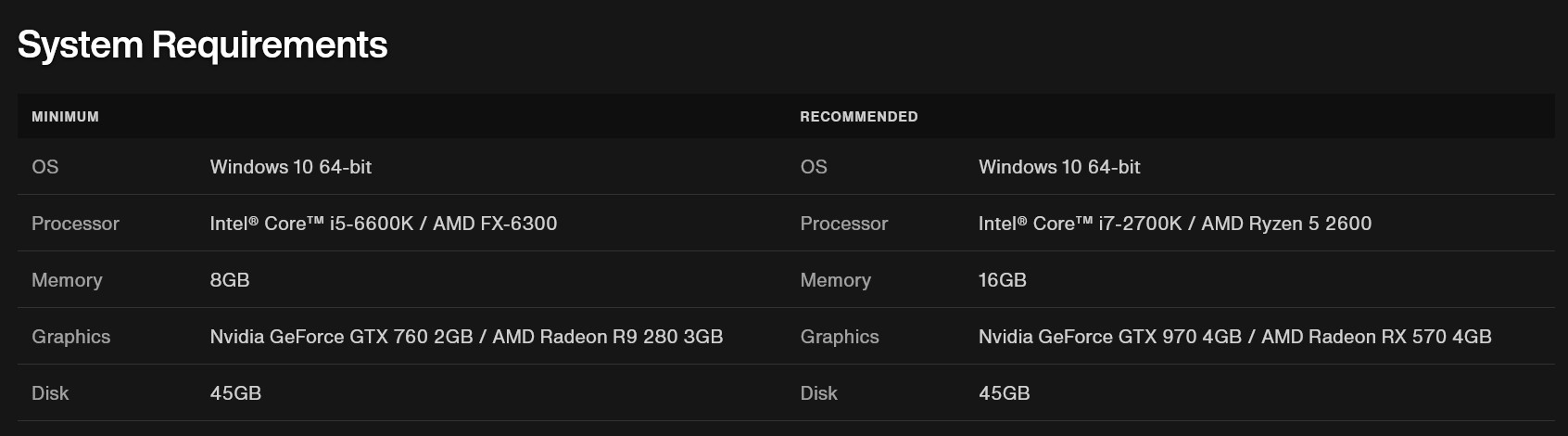 Rockstar opublikował także oficjalne wymagania sprzętowe pecetowego wydania Grand Theft Auto: The Trilogy – The Definitive Edition. Możecie je zobaczyć na obrazku poniżej.