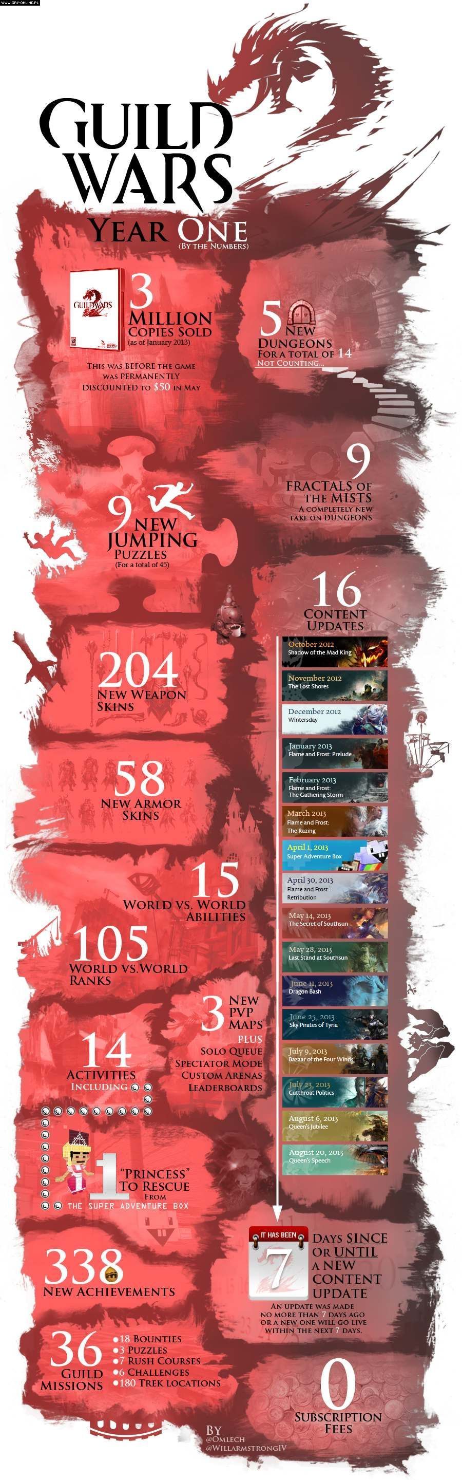 W związku ze zbliżającą się pierwszą rocznicą obecności Guild Wars 2 na rynku, opracowano infografikę podsumowującą miniony rok. Pomaga ona zorientować się w tym, ile twórcy zrobili dla swojej produkcji do tej pory.