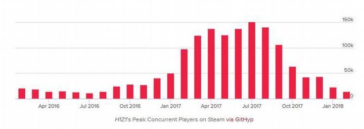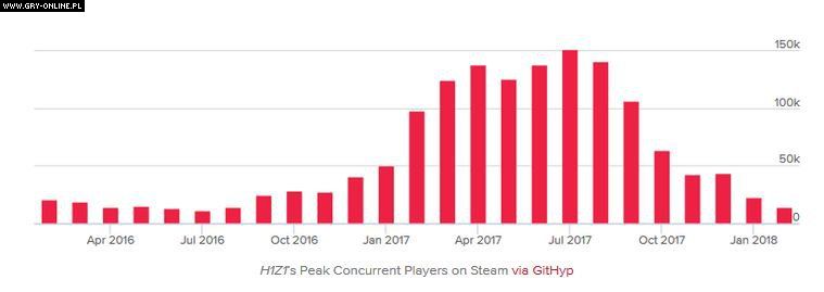 H1Z1 może pochwalić się dość burzliwą historią. Projekt amerykańskiego studia Daybreak Game Company, znanego chociażby z sieciowych PlanetSide 2 i serii EverQuest, początkowo miał być wyłącznie grą survivalową z zombie w stylu DayZ. Ostatecznie do gry wprowadzono również tryb battle royale. Wiązało się z nim klika kontrowersji, lecz ostatecznie okazał się strzałem w dziesiątkę. W lutym 2016 roku twórcy podjęli decyzję o podzieleniu gry na dwa tytuły – Just Survive, będący tym, czym H1Z1 miało być od samego początku i King of the Kill, stawiający na zabawę w „ostatniego żywego”. Ten drugi zaczął robić coraz większą furorę. W pewnym momencie znalazł się on na trzecim miejscu pod względem popularności na platformie Steam i zdobył zainteresowanie drużyn e-sportowych, a nawet telewizji. W ubiegłym lipcu w H1Z1 (gdyż pod taką nazwą figuruje obecnie King of the Kill) bawiło się w szczytowych okresach nawet 150 tysięcy osób jednocześnie. Niestety, pod koniec 2017 roku nastąpił poważny krach i tytuł zaczął systematycznie tracić sympatyków. Sytuacji nie poprawił darmowy tydzień zorganizowany w grudniu. Jak podaje serwis GitHyp, w niecałe 8 miesięcy H1Z1 straciło 91% graczy – ze 150 tysięcy do zaledwie 8 tysięcy.