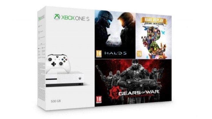 - Konsola Xbox One S 500GB + gra Halo 5 + gra Rare Replay + gra Gears of War: Ultimate Edition – 899 zł zamiast 999 zł