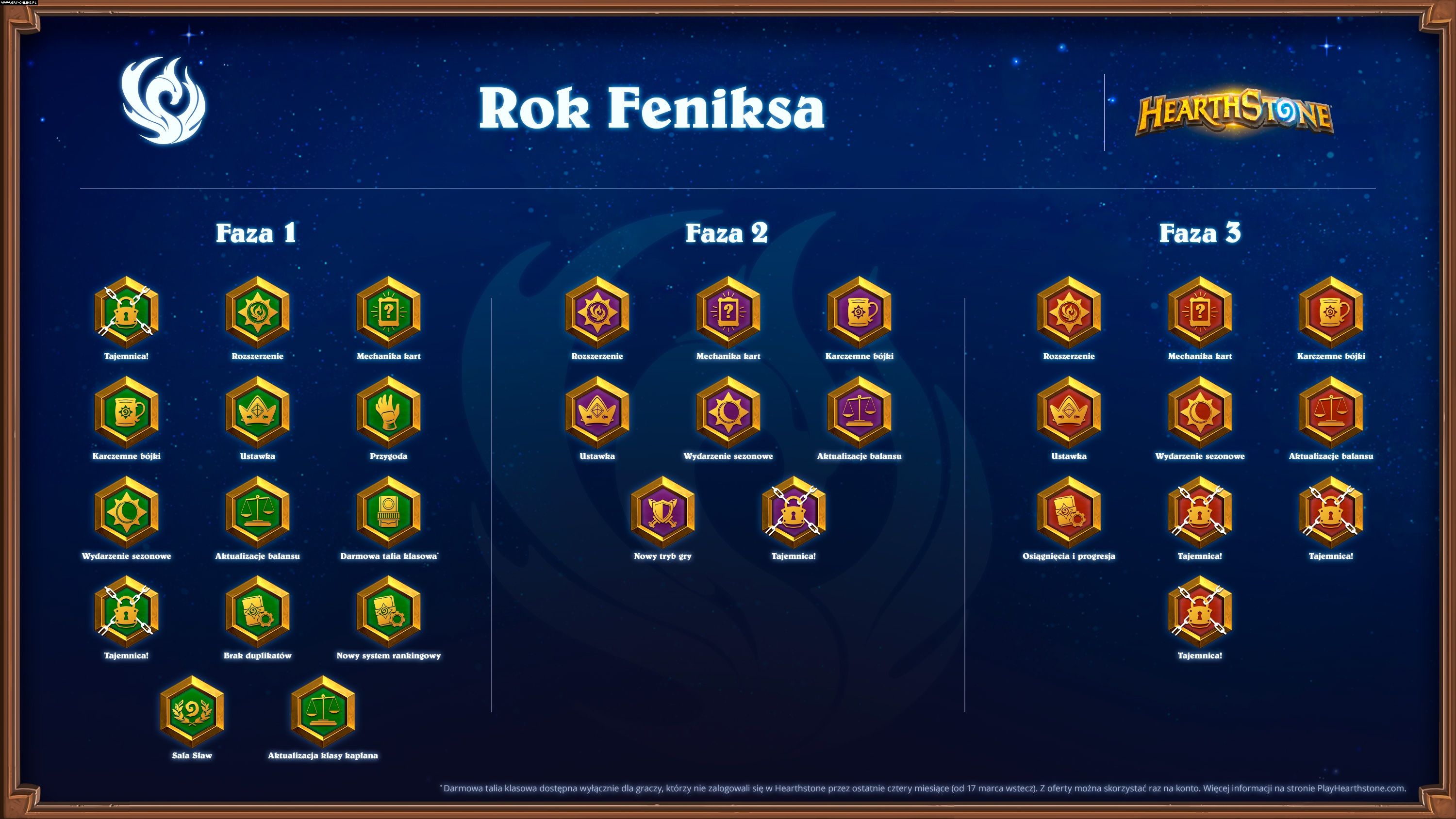 Zmiany zmianami, ale nowy rok w Hearthstone nie może się obejść bez kolejnego dodatku. Tym są zapowiedziane właśnie Popioły Rubieży, w których powróci ulubieniec fanów – Illidan. Łowca demonów i jego poplecznicy będą musieli stawić czoła zagrożeniu ze strony Rdzawego Legionu, złożonego z na wpół mechanicznych bestii. Tę historię poznamy w ramach nowej przygody. Nie potwierdzono, czy znów rozciągnie się ona na cały Rok Feniksa, ale ciepłe przyjęcie kampanii Ligi Z.Ł.A. wskazywałoby na taką możliwość.