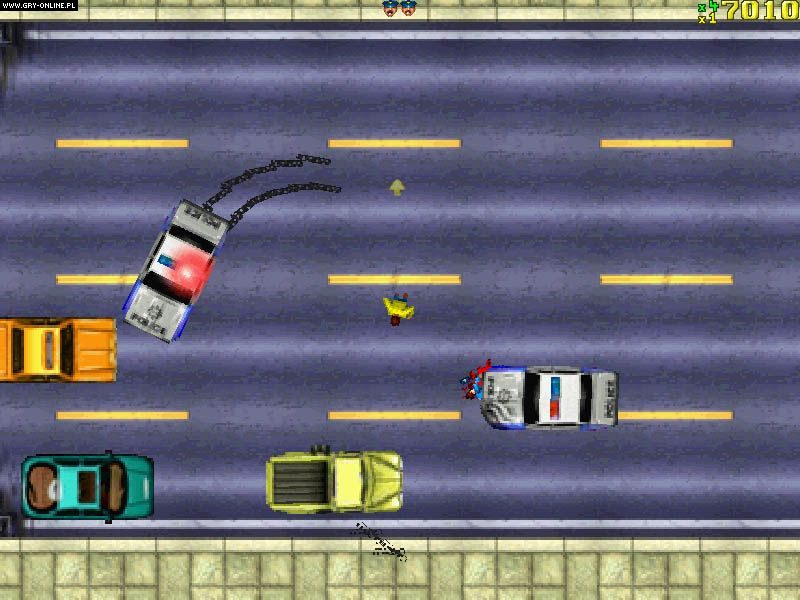 Pomimo tego, że całą zabawę obserwujemy z lotu ptaka, GTA oferuje swobodę porównywalną z tytułami reprezentującymi pełne 3D. Dane jest nam kraść samochody, motocykle, a nawet czołgi, którymi następnie możemy jeździć po mieście, szerząc zamęt wśród jego mieszkańców. W chwili premiery dzieło mogło poszczycić się bogatą ścieżką dźwiękową, prezentowaną w formie siedmiu stacji radiowych. Na uwagę zasługiwał również ciekawy asortyment dostępnej w grze broni, zawierający m.in. miotacz płomieni czy wyrzutnię rakiet. Narzędzia te idealnie nadawały się do niszczenia samochodów i motocykli oraz eksterminowania dwuwymiarowych ludzi, za zabijanie których autorzy nagradzali nas zresztą solidną dawką punktów.