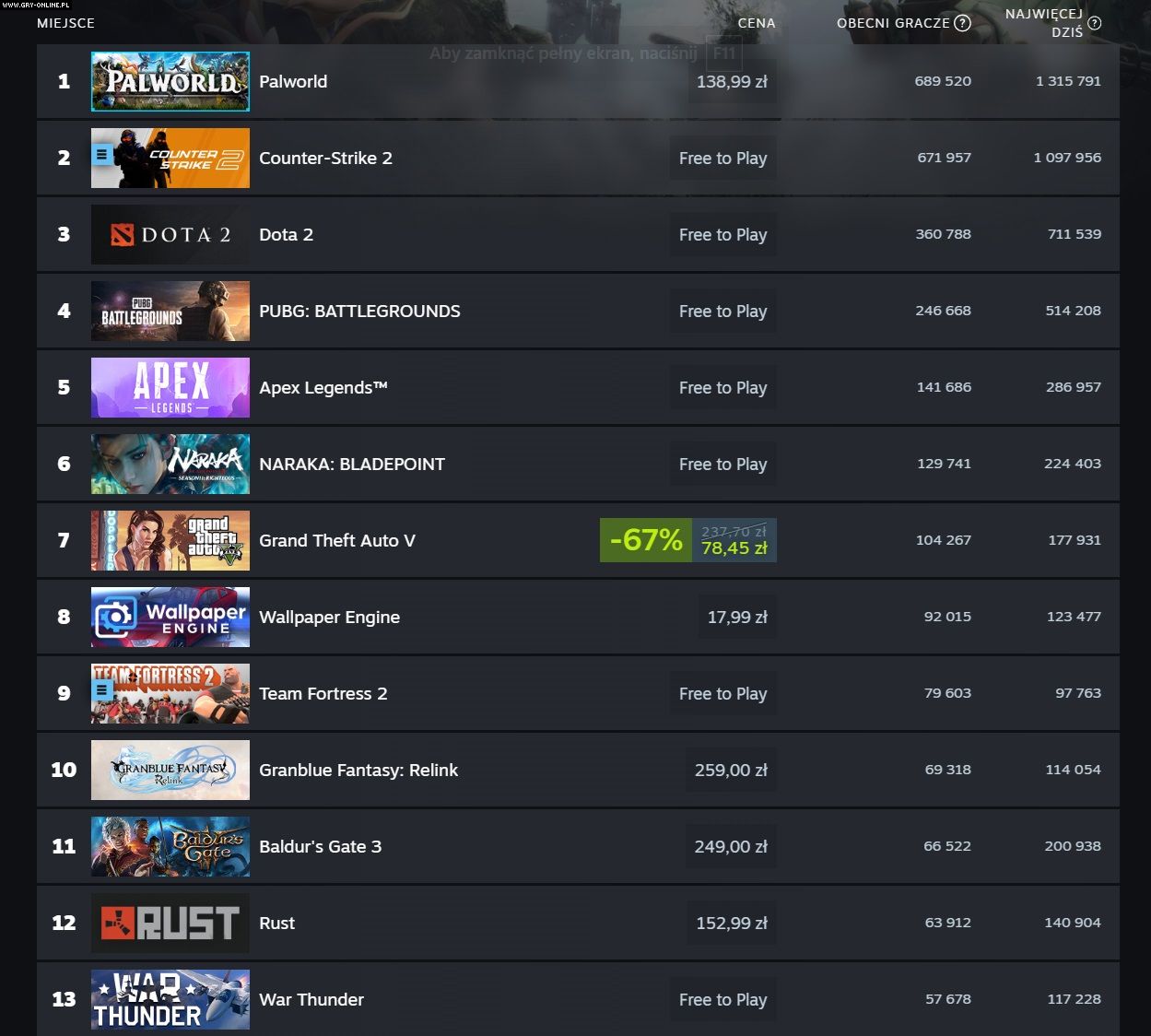 Zresztą nawet na tle innych darmowych hitów gra radzi sobie lepiej niż przeciętny tytuły free-to-play. Dzieło studia 24 Entertainment regularnie jest wśród dziesięciu najczęściej ogrywanych tytułów na Steamie. W chwili publikacji tego tekstu zajmowało szóstą pozycję w notowaniach platformy, tym samym pokonując takie tytuły jak War Thunder, Team Fortress 2, Rust oraz Lost Ark.