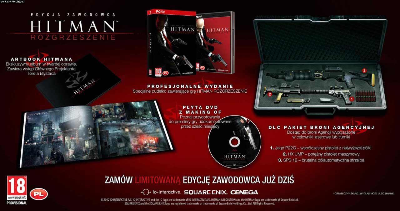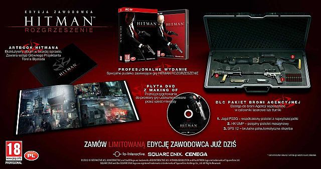 Cenega, oficjalny partner firmy Square Enix Ltd. w Polsce, Czechach, na Słowacji i na Węgrzech z przyjemnością informuje, że gra Hitman: Rozgrzeszenie dostępna będzie w Polsce również w limitowanej edycji nazwanej Edycją Zawodowca w wersji na komputery osobiste oraz konsole Xbox 360 i PlayStation 3. W skład Hitman: Rozgrzeszenie Edycja Zawodowca wchodzą: