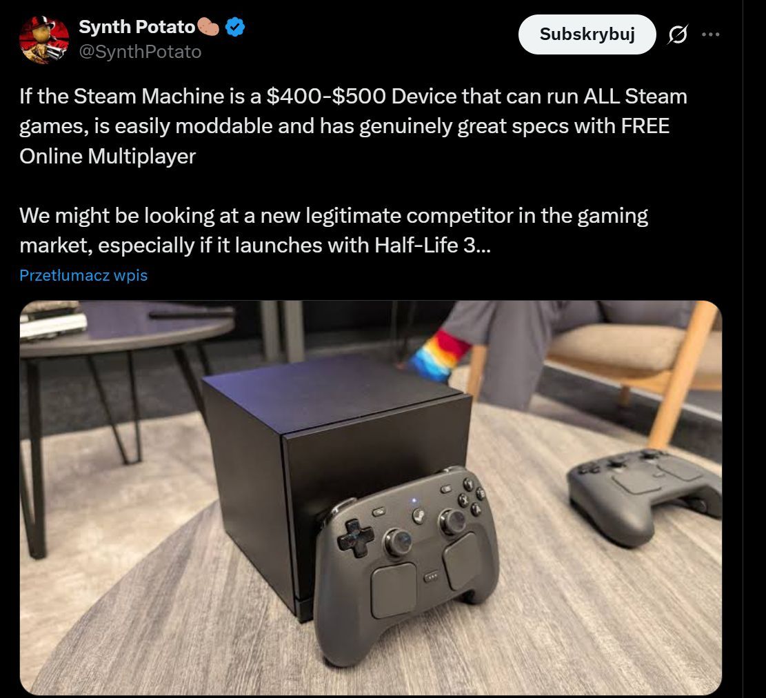 A potencjał na monetyzację jest spory – Valve dominuje na rynku PC, więc nawet jeśli firma będzie „stratna” na sprzedaży swoich konsol, to i tak będzie nadrabiać dodatkową sprzedażą na platformie Steam. I obstawiam, że to zakładają plany Gabe’a i spółki. Zwłaszcza, że obecny kierunek rozwoju Windowsa wybitnie nie odpowiada jego użytkownikom. A Steam Machine napędzany SteamOS ma być w założeniu tak samo swobodny w kwestii oprogramowania, jak robi to Steam Deck. To oznacza, że gracze będą mogli swobodnie lawirować pomiędzy platformami wydawców, a do tego instalować mody oraz modyfikować cały soft według własnego upodobania.
