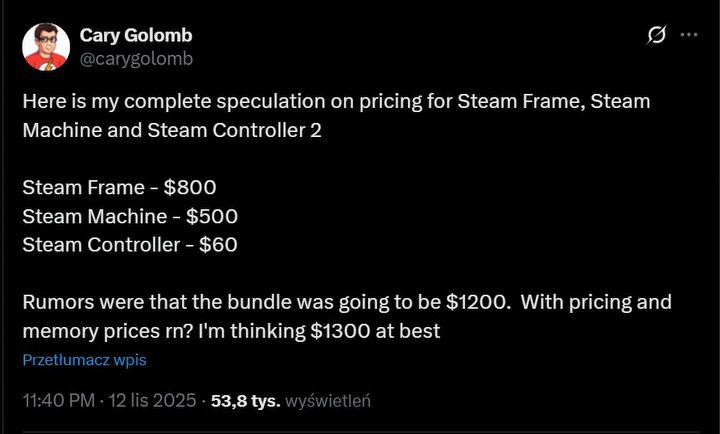 Moim zdaniem, jeśli cena utrzyma się w okolicach 500-600 dolarów, to można będzie mówić o sporym potencjale do konkurowania z Sony oraz Nintendo. PlayStation 5 Pro mocno zaszalało z ceną i okazało się, że jednak nie jest takim sukcesem, jak spodziewali się Japończycy. Obecna tendencja wśród graczy jasno sugeruje, że szukają tanich platform do grania, zwłaszcza w obliczu rosnących cen podzespołów. Do tego dochodzi fakt, że SteamOS okazał się całkiem udanym systemem operacyjnym, skierowanym do graczy.