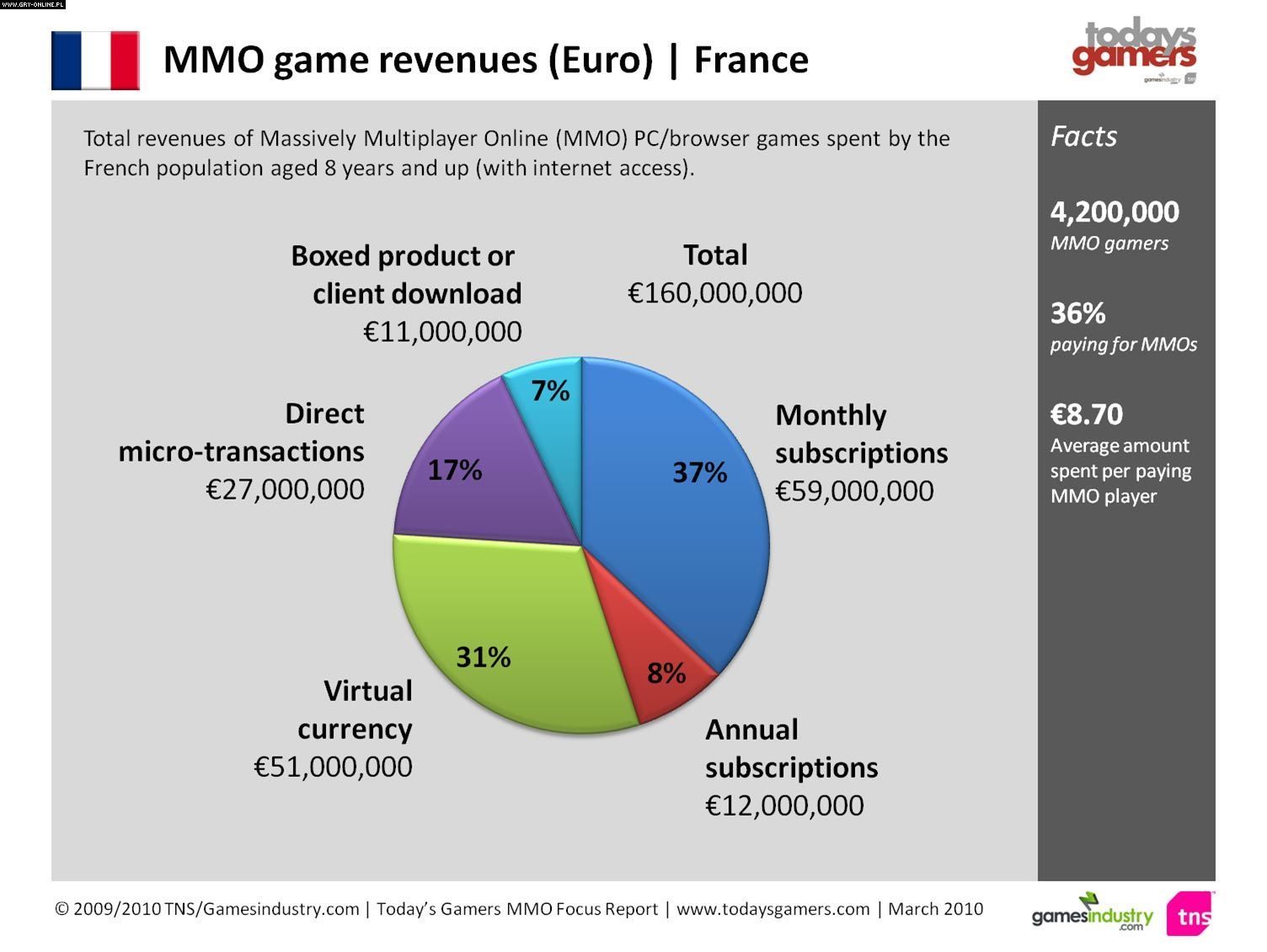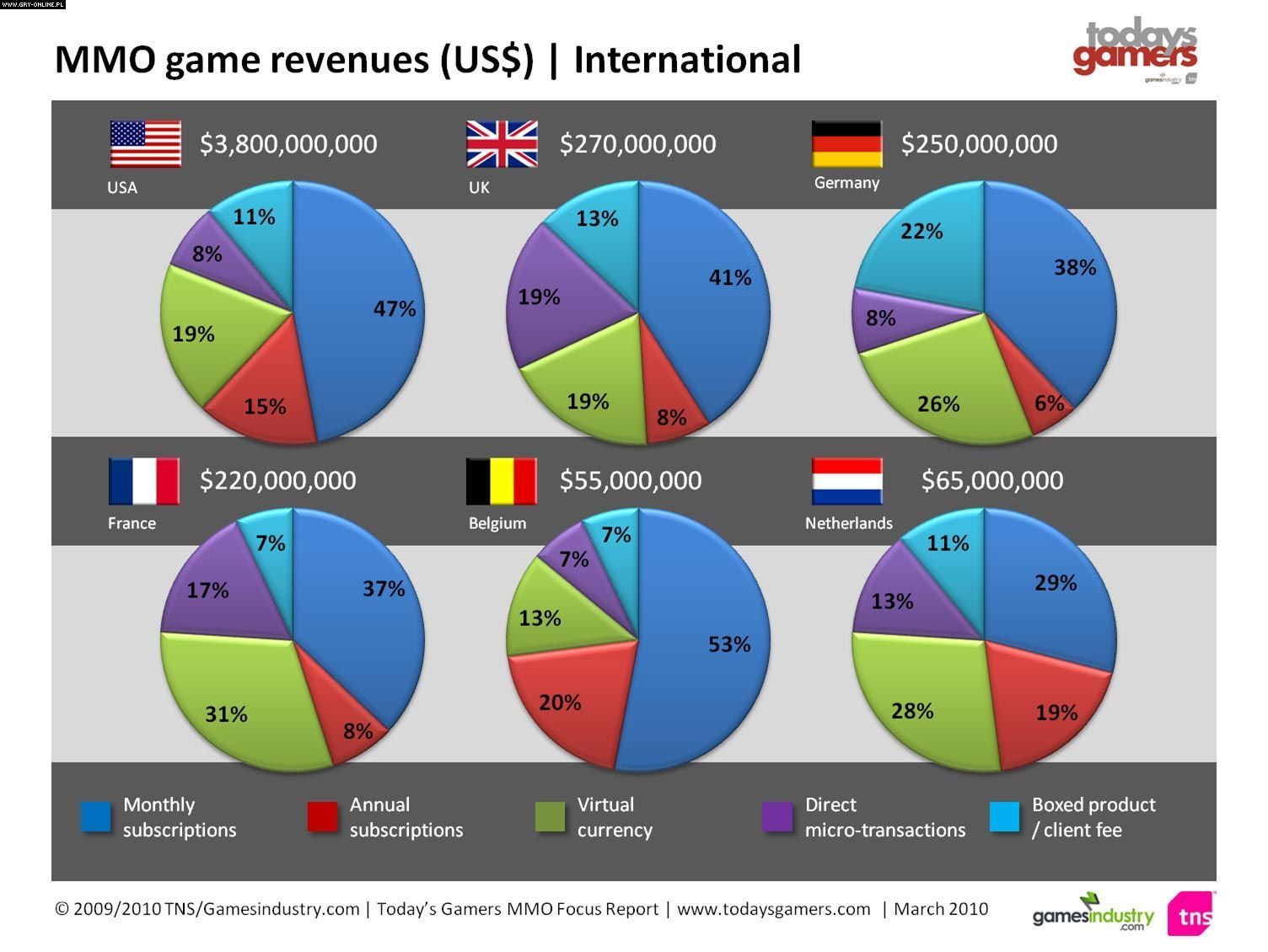 Serwis GamesIndustry.com opublikował raport z najnowszych badań Todays Gamers i TNS dotyczących wydatków w obszarze gier MMO oraz popularności tej formy rozrywki wśród graczy. Badanie objęło swoim zasięgiem Stany Zjednoczone, Wielką Brytanię, Belgię, Holandię, Francję oraz Niemcy.