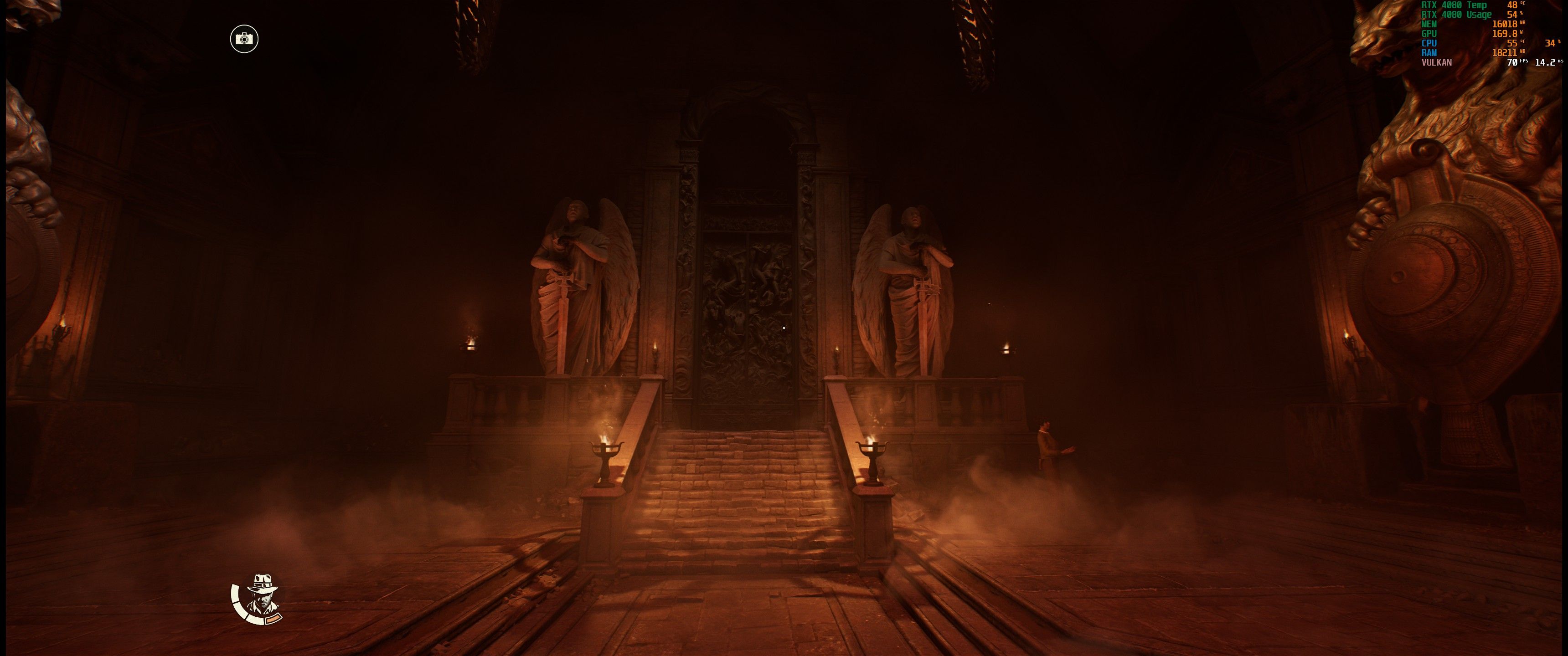 W tej chwili jedyną techniką upscalingu dostępną w grze jest DLSS. Twórcy nie zdecydowali się na dodanie FSR czy XeSS na premierę. Nie wiadomo jeszcze, kiedy i czy w ogóle to się zmieni. Jeśli chodzi o jakość działania DLSS, to w Indianie nie idzie odczuć żadnych jej negatywnych skutków. Obraz jest ostry i nie pojawiają się żadne artefakty. Jedynie przy generowaniu klatek zauważyłem drobne glitchowanie się obrazu po bokach ekranu, kiedy miałem wyłączoną synchronizację pionową.