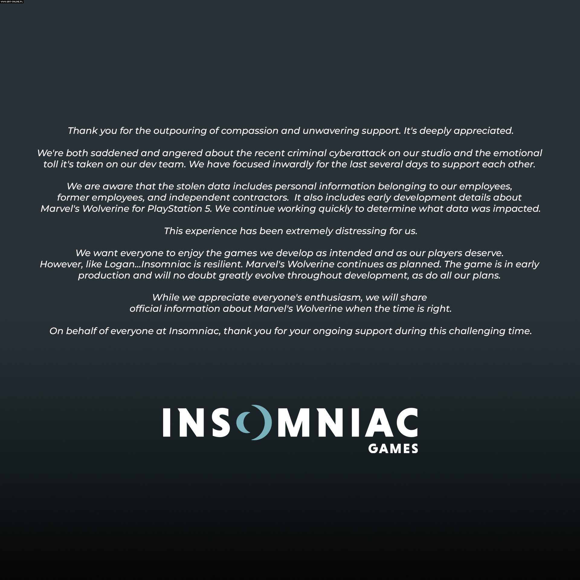 Po ataku hakerów na Insomniac Games w studiu panują niewesołe nastroje, ale zespół podziękował za słowa wsparcia od fanów i zamierza wziąć przykład z bohatera Marvel's Wolverine.