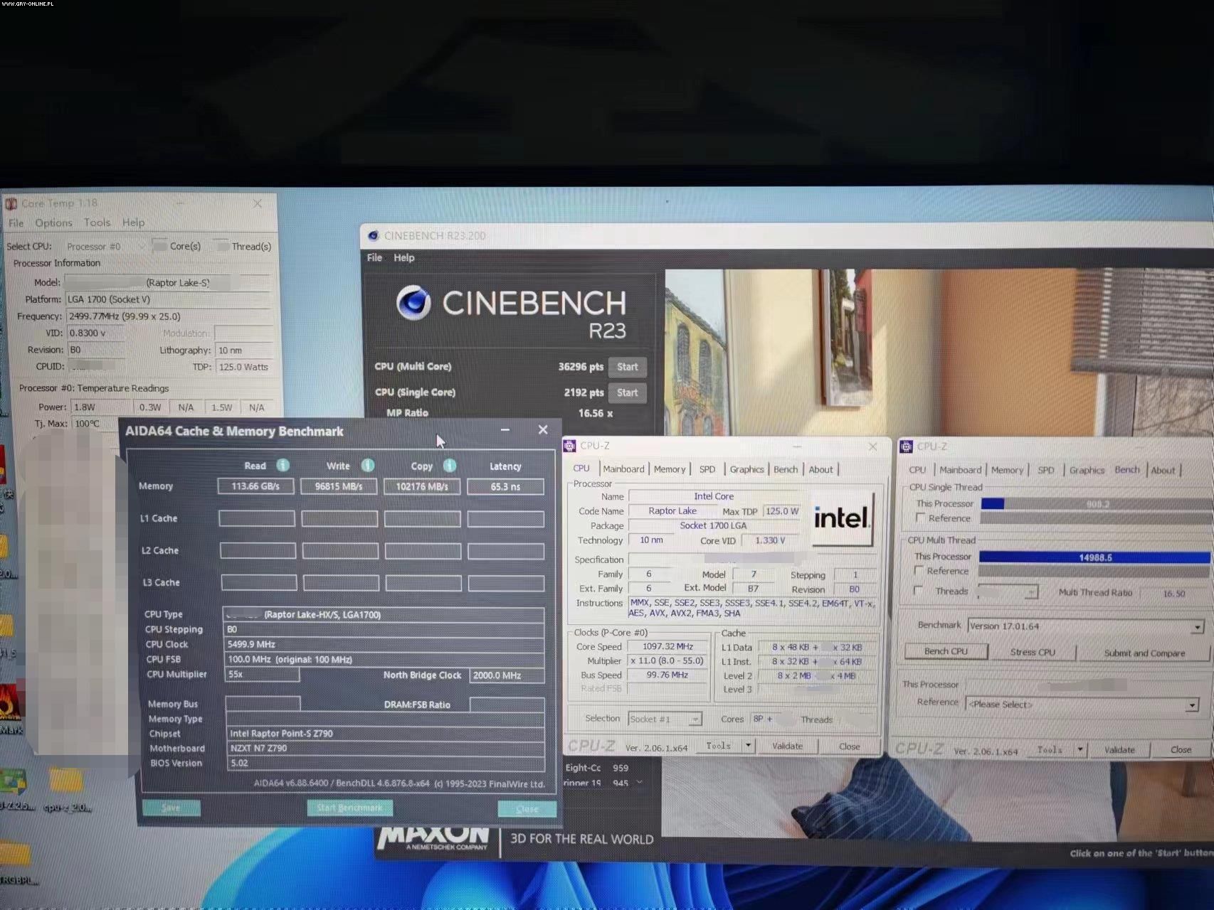 Drugi screen prezentuje wyniki wydajności procesora uzyskane w dwóch benchmarkach – Cinebench R23 i CPU-Z – uzyskane na płycie głównej NZXT N7 Z790. Już na wstępie można zaznaczyć, że z testów tych wynika dość jednoznacznie, że poprawa wydajności Core i7-14700K w stosunku do Core i7-13700K wynika w dużej mierze ze zwiększenia liczby rdzeni.