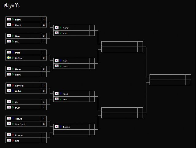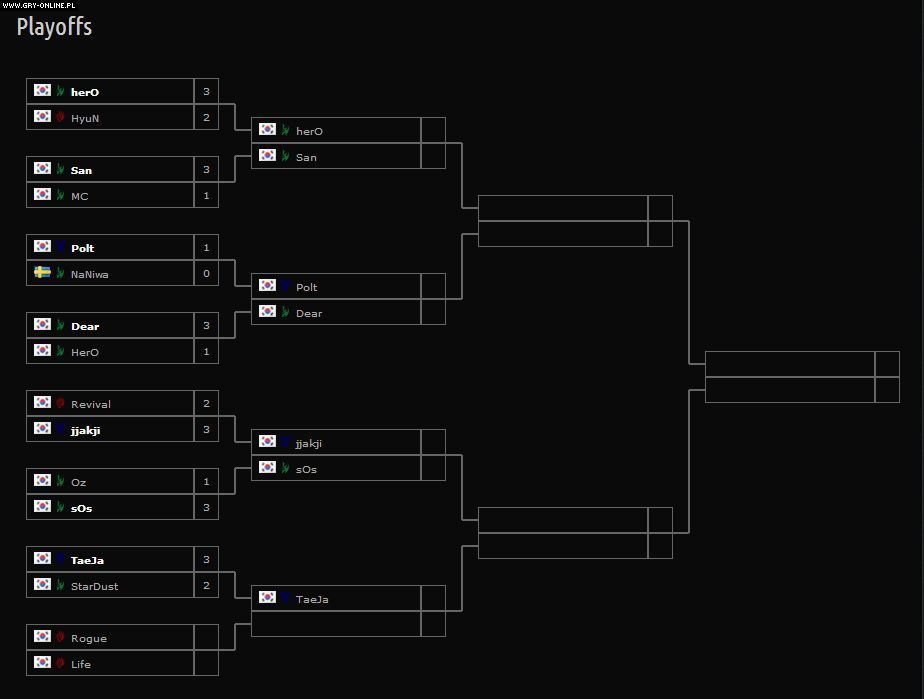 Rozgrywana wczoraj faza 1/8 finałów w StarCraft II: Heart of the Swarm obfitowała w kilka niezłych pojedynków, nie zabrakło również kontrowersji. Podobać mogło się szybkie starcie PvP w wykonaniu Sana i MC, które ten ostatni przegrał (można je zobaczyć tutaj). W pierwszym meczu odpadł też ostatni gracz niepochodzący z Korei Południowej, Szwed NaNiwa – szkoda tylko, że w dosyć żenującym stylu (więcej poniżej). Wśród ośmiu graczy, którzy będą dzisiaj walczyć o przejście do półfinałów jest czterech Protossów, trzech Terran i tylko jeden Zerg – na pewno nie osłabi to powszechnego przekonania, że kosmiczna rasa Protossów jest najsilniejszą w grze. Warto podkreślić świetną atmosferę, którą na trybunach stworzyła polska publiczność aktywnie dopingująca koreańskich graczy.