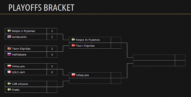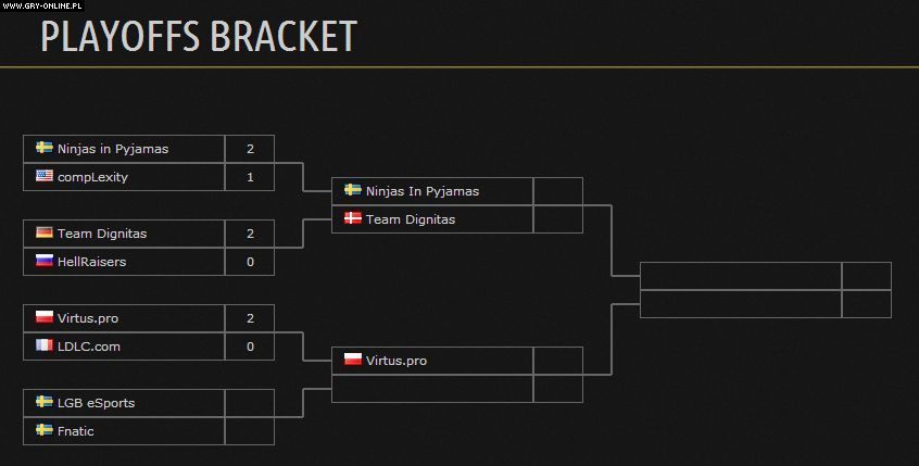 Zgodnie z oczekiwaniami wszystkich polskich fanów zespół Virtus.pro w pięknym stylu przedarł się do półfinałów. Polacy pewnie pokonali w ćwierćfinale francuski team LDLC.com 2:0 (16:3 i 16:8) – cały mecz można zobaczyć tutaj. Kolejny raz imponowali formą tacy gracze, jak byali czy pasha, ale na pochwałę zasługuje cała piątka. Polacy są zdecydowanie na fali i z niecierpliwością oczekują na kolejnego przeciwnika (LGB eSports lub Fnatic). Szkoda z kolei ambitnego ukraińskiego zespołu HellRaisers, który odpadł wczoraj w starciu z duńskim Team Dignitas.