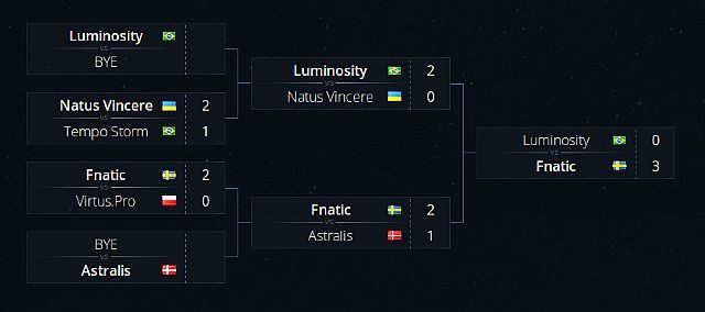 Do etapu Play-off zakwalifikowało się sześć drużyn. W finale młody, brazylijski zespół Luminosity Gaming zmierzył się ze szwedzką grupą Fnatic, należącą do jednej z najbardziej utytułowanych ekip sportu elektronicznego. Młodszy team uległ bardziej doświadczonemu, a mecz zakończył się wynikiem 3:0.