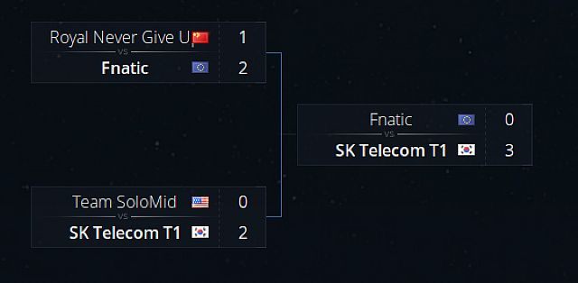 Do fazy pucharowej przeszły cztery drużyny. W finale Fnatic zmierzył się z ekipą SK Telecom T1, jedną z najlepszych, jeśli chodzi o grę studia Riot Games. Mecz zakończył się wynikiem 3:0 i zwycięstwem Koreańczyków. Wygrany zespół zainkasował wygraną w wysokości 50 tysięcy dolarów (blisko 200 tysięcy złotych).