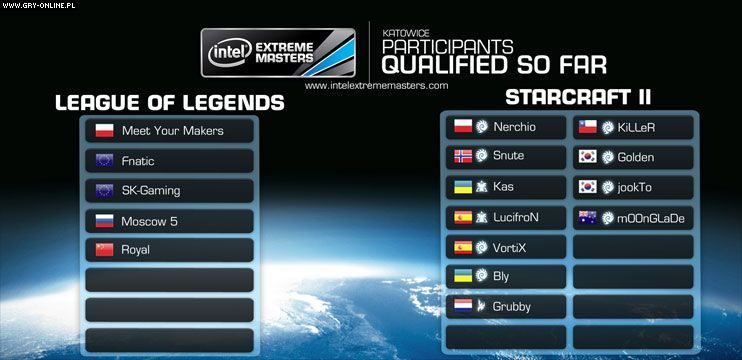 Intel Extreme Masters Katowice odbędzie się w dniach 18-20 stycznia 2013 roku w katowickim Spodku. Zawodnicy z całego świata powalczą na platformach Starcraft II i League of Legends o 82 tysiące dolarów i możliwość zagrania w światowych finałach. Odbędzie się także konkurs dla cosplayerów. Wstęp będzie darmowy.