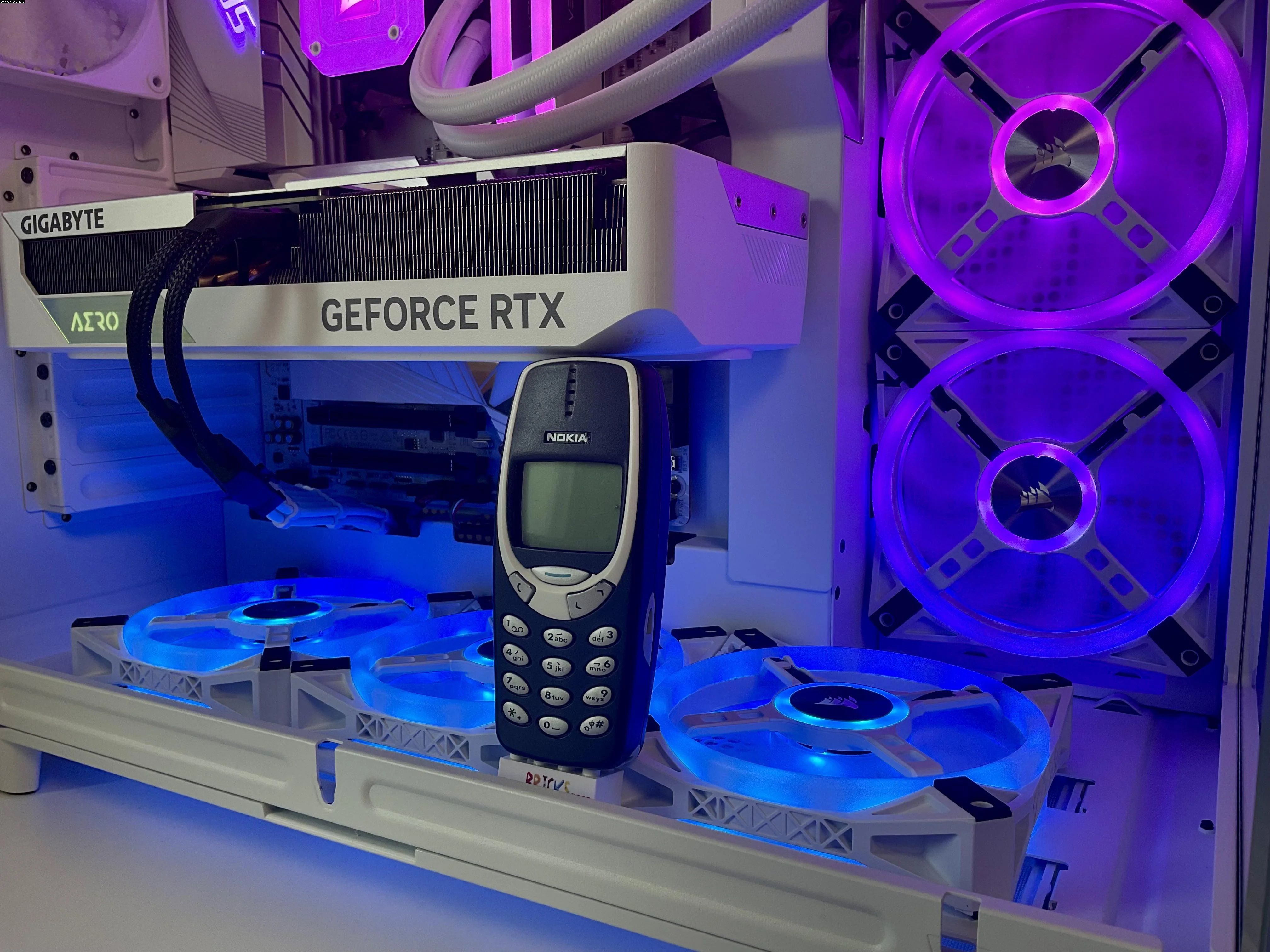 Nowoczesne karty graficzne potrafią być naprawdę masywne i ciężkie (do 35 cm długości i około 2 kg), szczególnie popularne modele takie jak Nvidia RTX 4080 i 4090. Bez odpowiedniego wsparcia mogą się one z czasem uginać, co w skrajnych przypadkach może prowadzić do uszkodzenia złącza PCIe lub całej płyty głównej. Dlatego właśnie niektórzy stosują specjalne podpórki lub inne kreatywne alternatywy, jak właśnie starą Nokię.