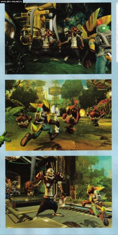 Przedstawiają one aktualny wygląd oprawy graficznej Ratchet & Clank Future: Tools of Destruction, która, pomimo słabej jakości skanów, prezentuje się bardzo ładnie (gra ukaże się na konsolę PlayStation 3). Screenshoty prezentują m.in. głównych bohaterów serii, a także ich nowych przeciwników. Podziwiać możemy także niektóre lokacje, w których będzie się toczyć akcja gry. Nie przeciągając dłużej – oto wspomniane skany: