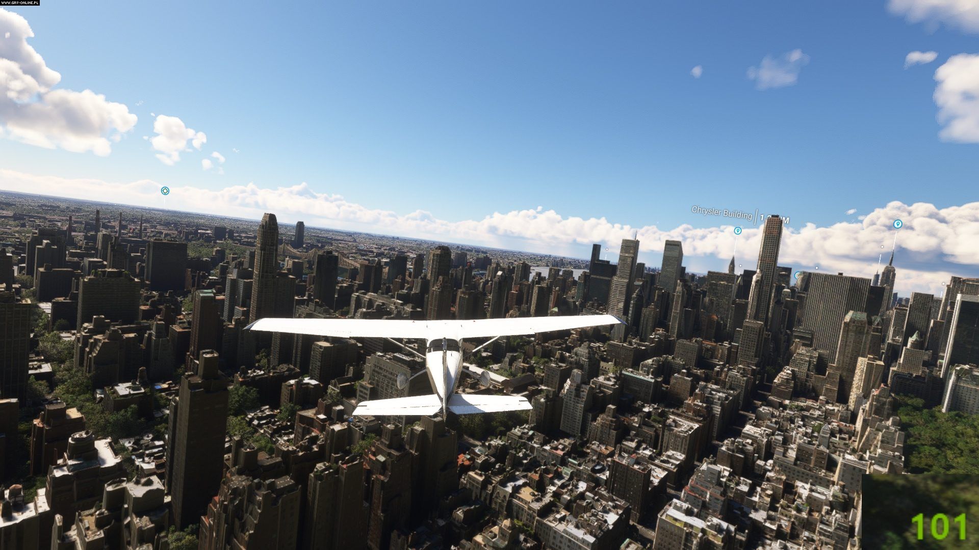Microsoft Flight Simulator został przetestowany chyba w najbardziej wymagającej lokacji w całej grze – nad Nowym Jorkiem. Wysokie ustawienia, włączona fotogrametria i streamowanie tekstur zdjęć satelitarnych, czyli lot nisko nad dosłownie każdym budynkiem i ulicą najbardziej ikonicznego miasta.