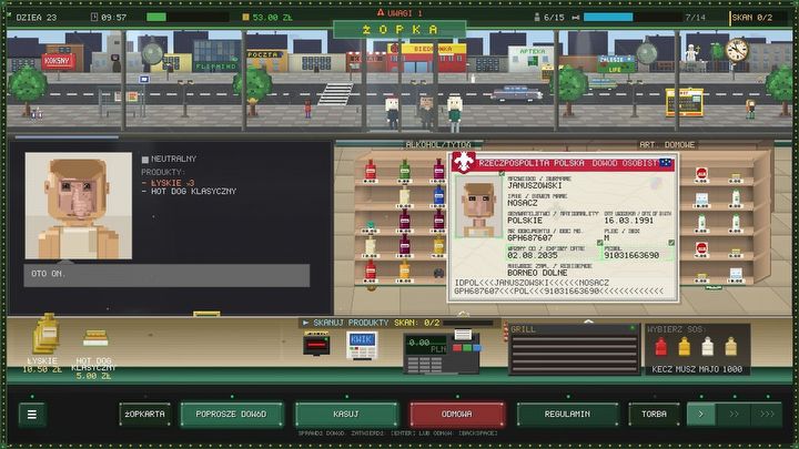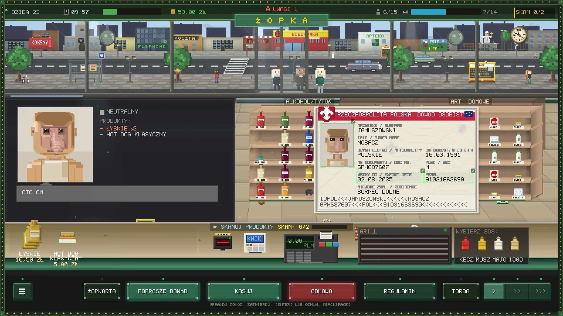 Z początku w grze będziemy tylko kasować produkty z ich obszernego katalogu, grillować hot-dogi oraz sortować paczki. Schody zaczynają się wraz z osiąganym w grze postępem, bo rodem z kultowego Papers, Please przyjdzie nam sprawdzać dokumenty, weryfikować kupony promocyjne czy naliczać dodatkowe opłaty, zgodnie z nowymi dyrektywami zarządu sklepu Żopka.