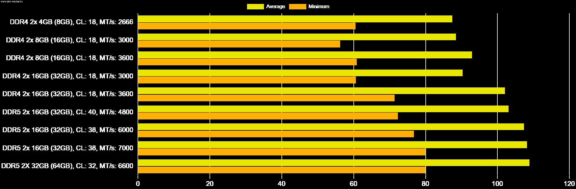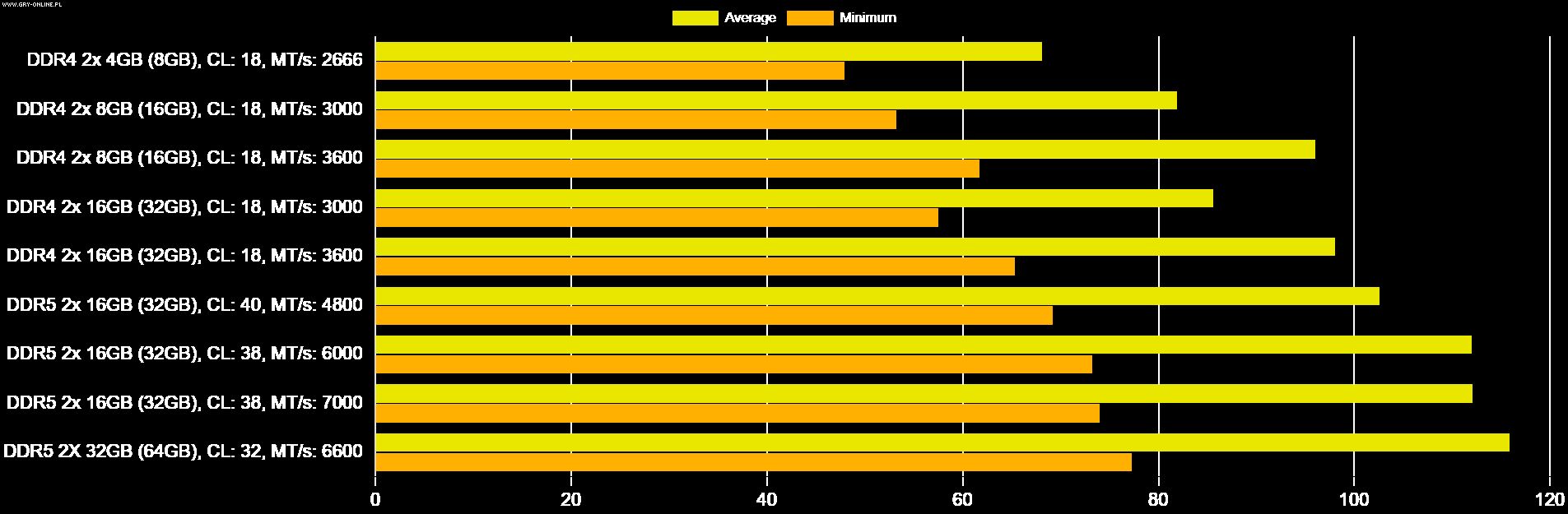 Entuzjaści mogą zainwestować w DDR5-7000. W tym przedziale cenowym warto pokusić się o kości z niższymi opóźnieniami, gdyż te, nawet w istniejących grach, zaoferują niewielki wzrost wydajności.